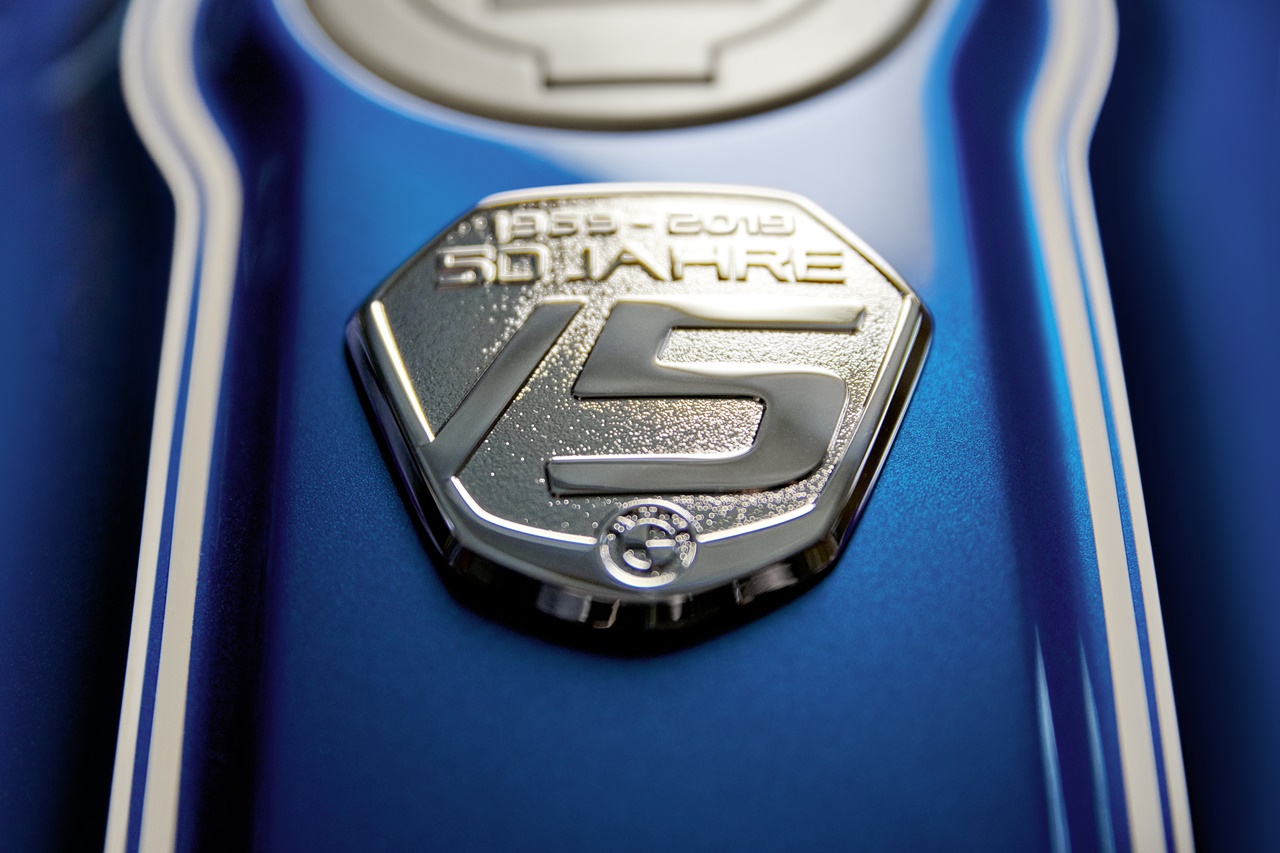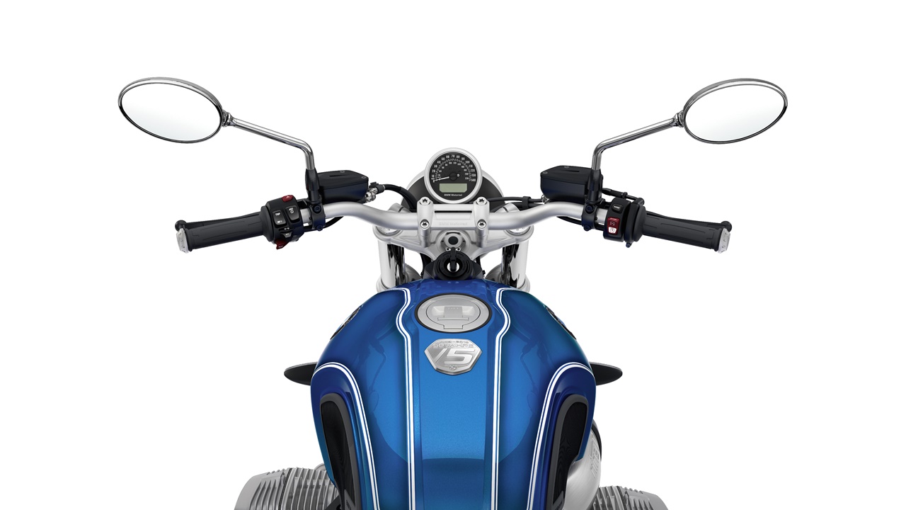 El modelo conmemorativo del 50º aniversarioR nineT /5, es una moto de estética retro pero de tecnología actual, con lujos como los puños calefactables de serie, unas modernas almohadillas para las rodillas adjuntas al depósito de combustible o, en el apartado de decoración, la distinguida pintura Lupinblau metallic con efecto smoke y su doble línea en el depósito, adornado con una plaqueta de conmemoración del 50º aniversario.